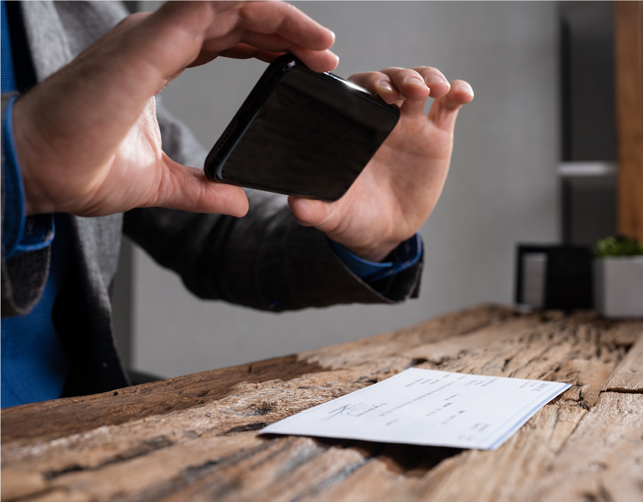 Small businesses can deposit individual checks on the go, anytime, using the Vantage Business Mobile app. It's as easy as taking a photo with your phone.